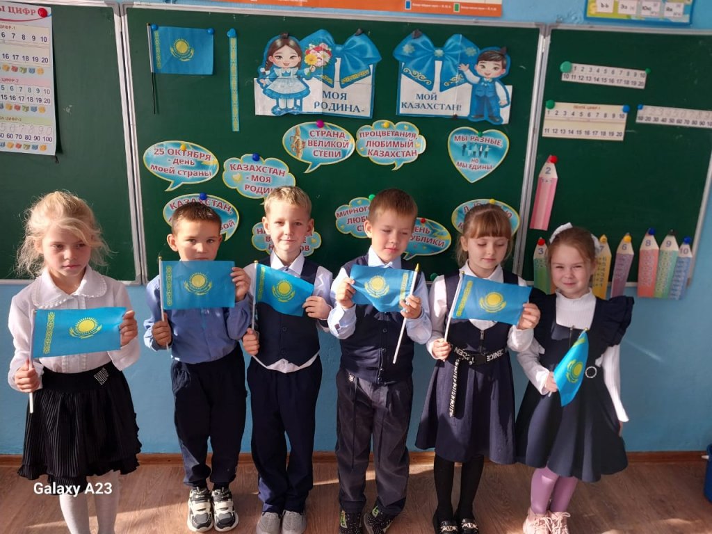 Бүгін бірінші сыныпта Республика күніне арналған сынып сағаты өтті. Балалар әнұранды орындап, сүйікті Отаны туралы айтып берді.