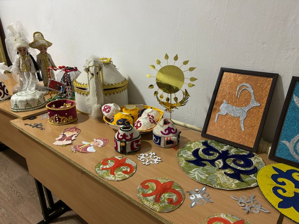 Ұлттық киім күніне орай мектепте ұлттық ою-өрнекті қолдана отырып, Ұлттық киім, зергерлік бұйымдар мен қолөнер элементтері бар көрме ұйымдастырылды.