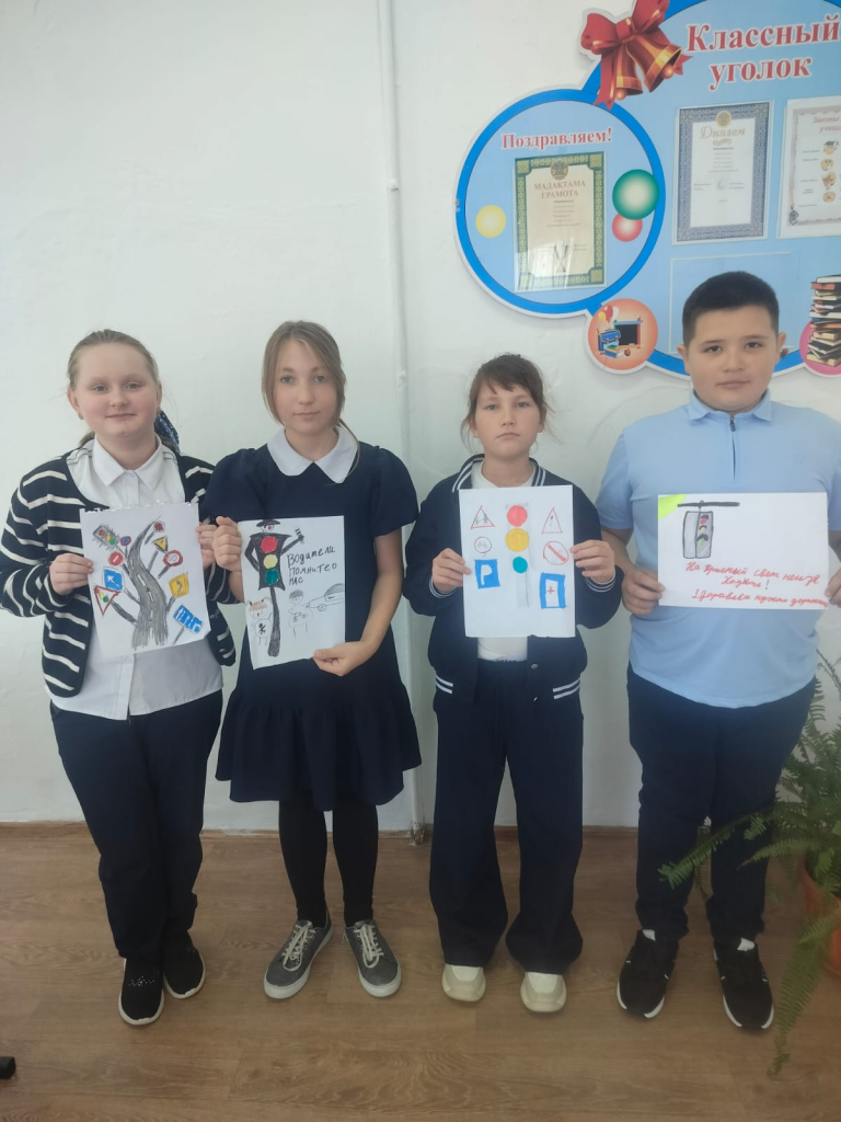 "Жол қозғалысы қауіпсіздігі апталығы" республикалық акциясы аясында 5-сыныпта "Жол қозғалысы Ережелері және жол қауіпсіздігі туралы"суреттер байқауы өткізілді Жетекшісі Ищанов Р. Е.