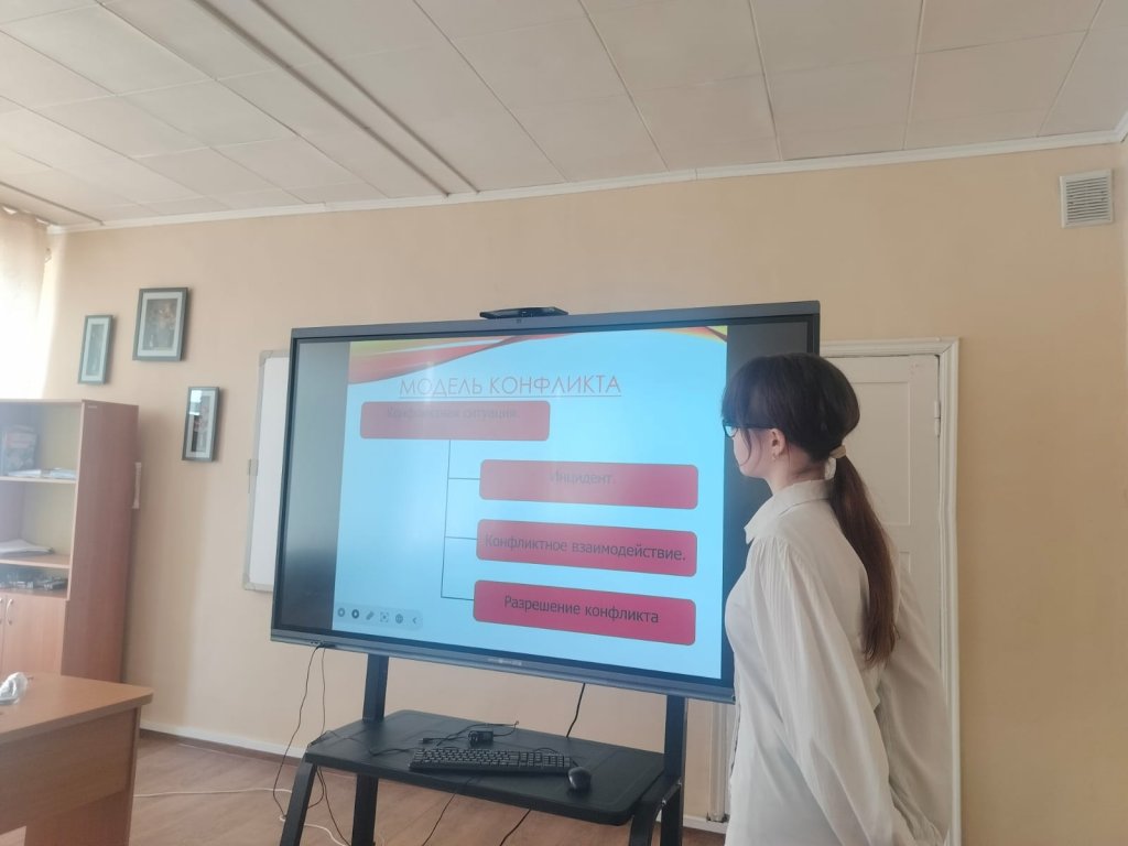 Тәрбие жұмысының жоспарына сәйкес 9-сыныпта қақтығыстар және оларды шешу жолдары тақырыбында сынып сағаты өткізілді Жетекшісі Сапарбеков А. Е.