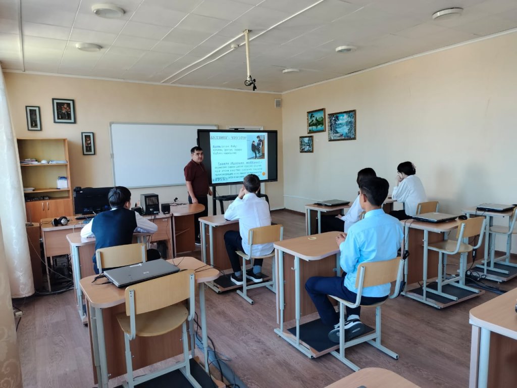 Тәрбие жоспарына сәйкес 8-9 сынып оқушыларына" булингтің алдын алу және олардың түрлері"тақырыбында сынып сағаты өткізілді Жетекшісі : Сапарбеков А. Е.