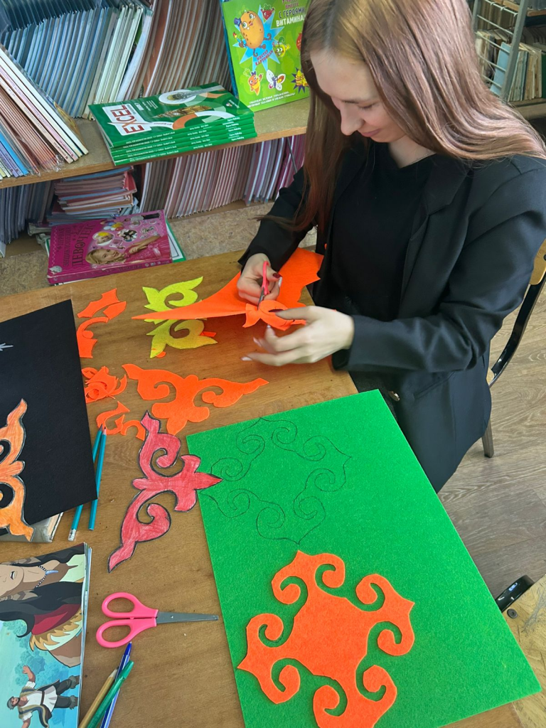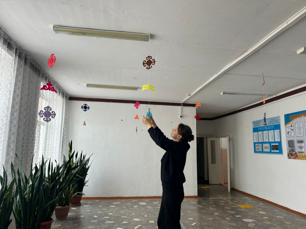 Ұлттық киім күні біздің ұжым Қазақ ұлттық ою-өрнегін пайдалана отырып, мектепті безендірумен айналысты.