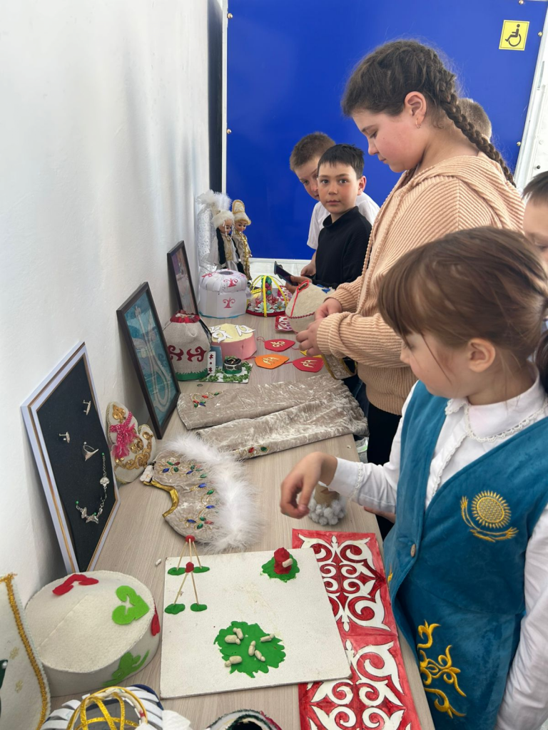 4-сыныпта Наурыз мерекесіне арналған сынып сағаты өтті. Балалар мереке дәстүрлеріне арналған көрмемен танысып, ұлттық заттар мен Наурыз рәміздерінің мағынасын талқылады, олардың нені білдіретінін білді. Сабақ барысында оқушылар мереке тақырыбына шағын аппликация жасады. Сынып сағаты балаларға ұлттық дәстүрлер туралы білімдерін кеңейтуге, шығармашылықпен айналысуға және көктемгі жаңару мен достық атмосферасын сезінуге көмектесті.