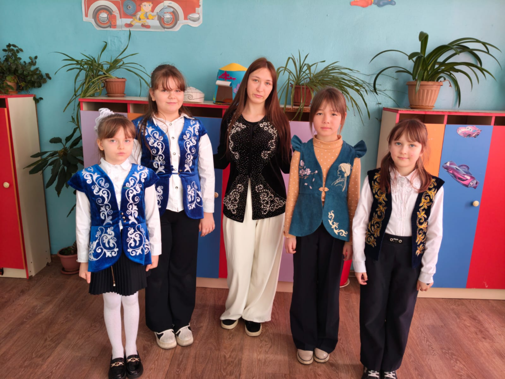 Ұлттық киім күні дәстүр бойынша оқушылар ұлттық стильде көкірекше киеді.