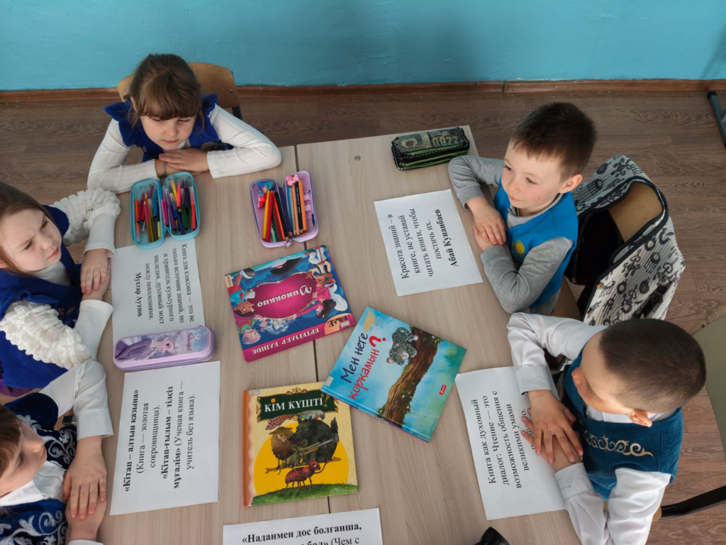 Мақсаты: кітапқа деген сүйіспеншілікті ояту, кітаптың адам өміріндегі маңыздылығын көрсету.