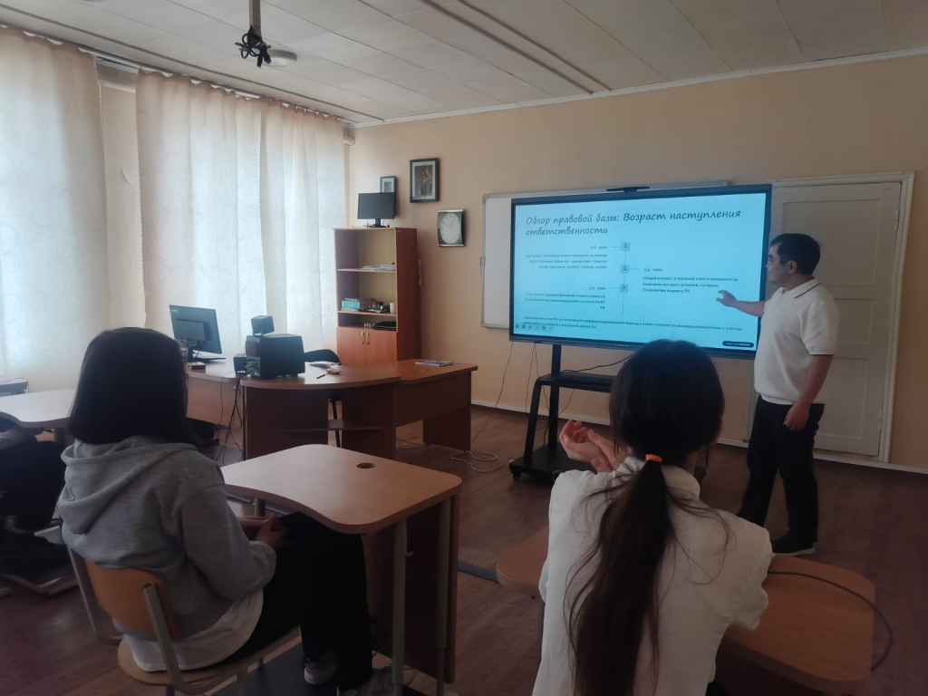 "Адал Азамат" тәрбие бағдарламасының жоспарына сәйкес 8-9 сыныптарда "кәмелетке толмаған бала заңды жауапкершілікке тартылуы мүмкін бе"тақырыбында сынып сағаты өткізілді